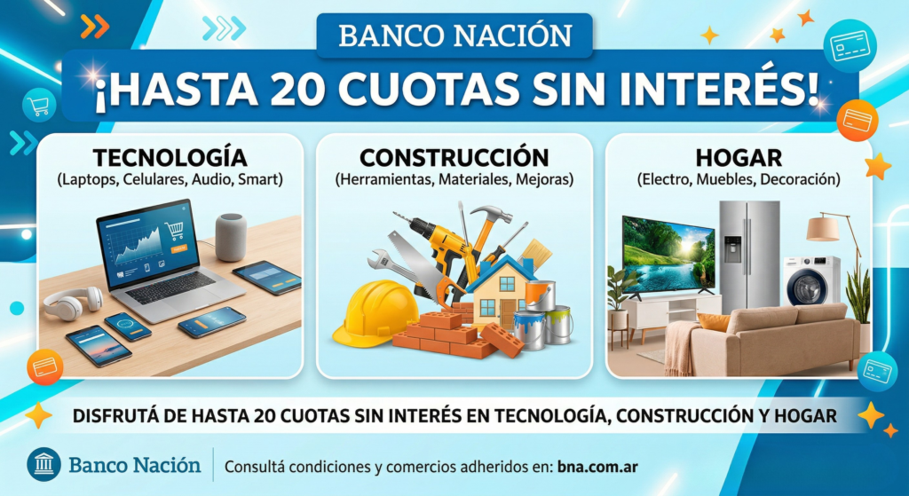 La economía argentina sigue en crecimiento y los bancos empiezan a hacerse eco. El Banco de la Nación Argentina (BNA) lanzó una nueva promoción de financiación en cuotas sin interés para quienes quieran renovar o equipar su hogar. La propuesta está disponible desde el 27 de marzo hasta el 31 de mayo de 2025, todos los días de la semana, con las tarjetas de crédito Visa y Mastercard de la entidad.
