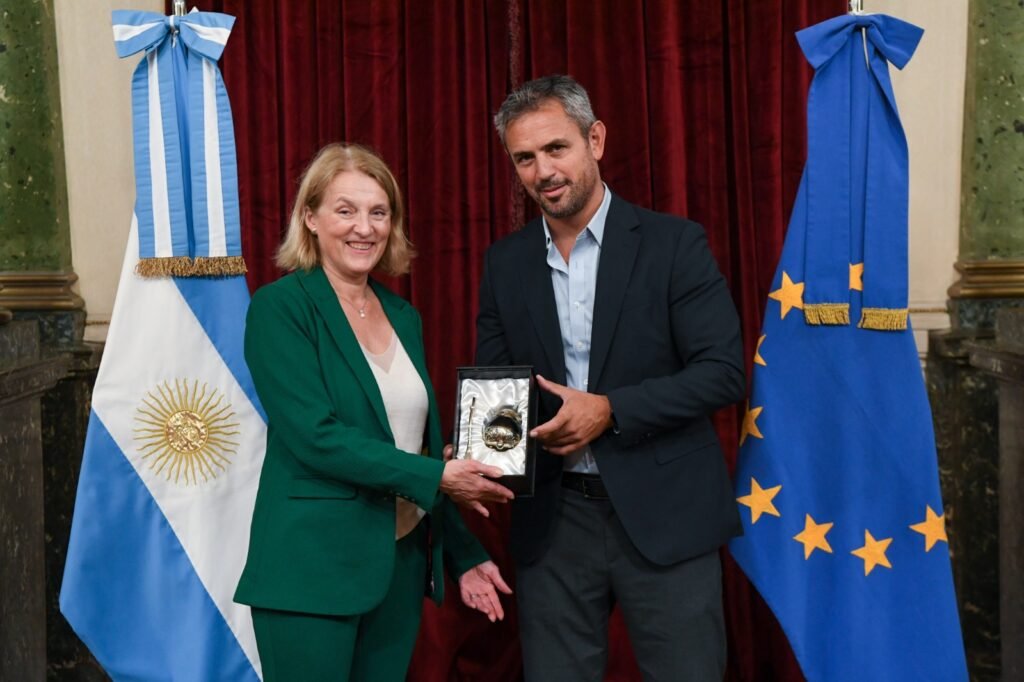 La delegación europea fue encabezada por Evelyn Regner, presidenta de la Delegación del Parlamento Europeo para las Relaciones con el Mercosur, y estuvo acompañada por el embajador de la Unión Europea en Argentina, Erik Høeg.
